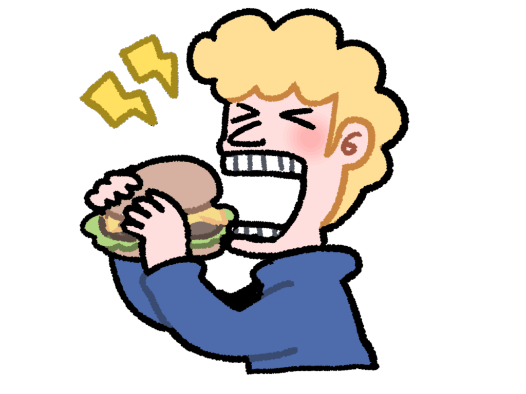 前歯の前後差がないため食べ物を噛み切る力が弱いです。また上下の顎の位置がずれていることで、奥歯の咬み合わせもずれていることがあり、食べ物を十分に咀嚼できていない場合があります。食べ物を適切な大きさにまで噛み砕けないと胃腸にも負担がかかってしまいます。また噛みにくいがゆえにしっかりと噛まないまま飲み込むことが習慣になり、口周りの筋力低下にもつながります。口周りの筋肉が低下するということは噛む力が弱くなるということですからまさに負のスパイラルです。