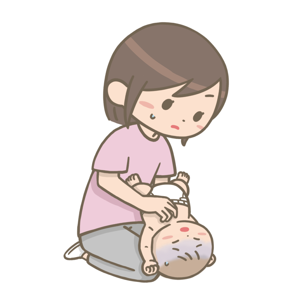 幼児対象:「背部叩打法」と「胸部突き上げ法」を行います。腹部ではなく胸部である点に注意してください。 まずは1つの方法で試し、窒息が解消されない場合は、もう1つの方法で試してください。どちらも叩くのは5回ほどまでです。