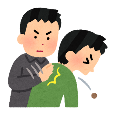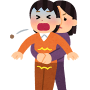 成人対象:「背部叩打法」(肩甲骨の間を強く叩く)という祖父に処置した方法と「腹部突き上げ法」を施します。
